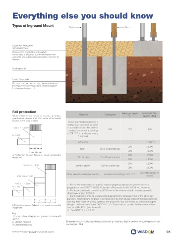 2. Barriers required Examples of commonly used impact attenuating materials, depths and corresponding maximum