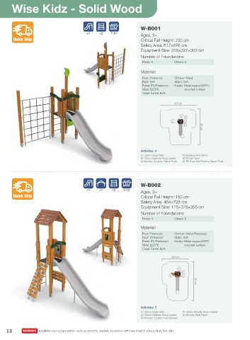 ① 150cm Single Slide ② 150cm Wooden Rock Climber