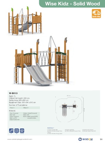 ① 120cm Double Slide ② Single-log Bridge ③ Stainless Net Climber