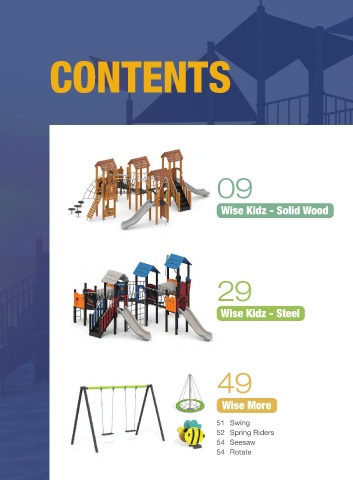 CONTENTS 09 Wise Kidz - Solid Wood 29 Wise Kidz - Steel 49 Wise More 51 Swing 52 Spring Riders 54 Seesaw 54 Rotate