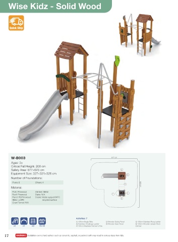 ④ Stainless Challenge Ladder ⑤ Wooden Gear Panel ⑥ 120cm Wooden Upright Rock