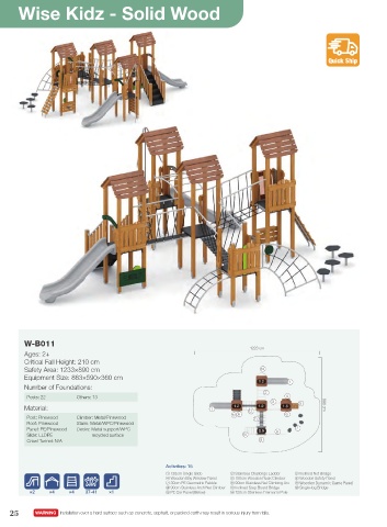 ① 120cm Single Slide ② Stainless Challenge Ladder ③ Inclined Net Bridge