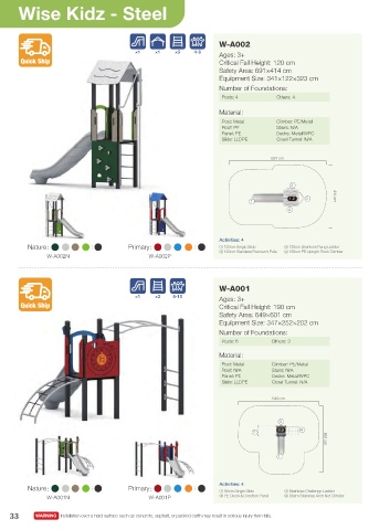 W-A001N W-A001P ③ PE Clock & Direction Panel ④ 90cm Stainless Arch Net Climber