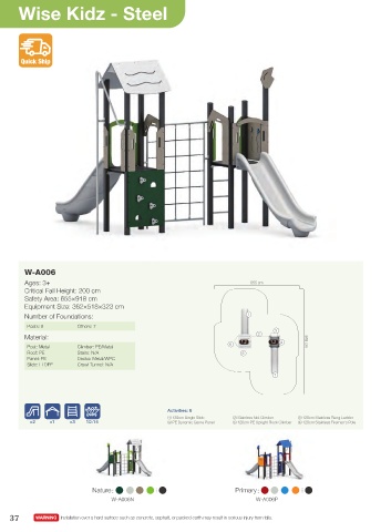 37 WARNING Installation over a hard surface such as concrete, asphalt, or packed earth may result in serious injury from falls.