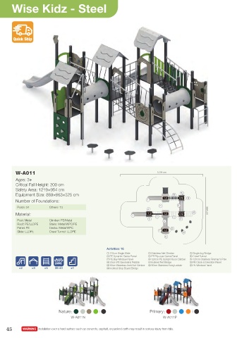 ① 120cm Single Slide ② Stainless Net Climber ③ Single-log Bridge
