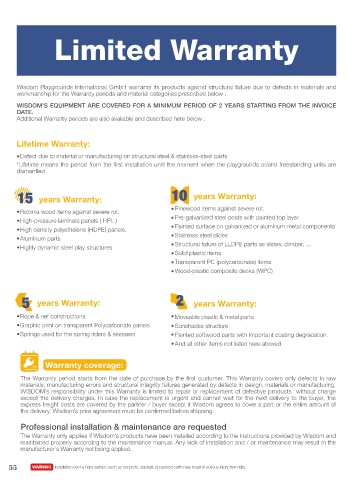 Wisdom Playgrounds International GmbH warrants its products against structural failure due to defects in materials and