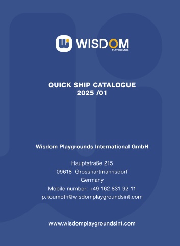 QUICK SHIP CATALOGUE 2025 /01 Wisdom Playgrounds International GmbH Hauptstraße 215 09618 Grosshartmannsdorf Germany Mobile number: +49 162 831 92 11 p.koumoth@wisdomplaygroundsint.com www.wisdomplaygroundsint.com